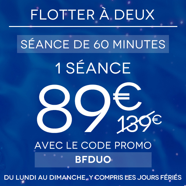 Tarif liberté : Séance du lundi au dimanche. Les séances achetées seront valables dans le centre Body Float Châtelet, situé 5 rue Saint-Bon à Paris.